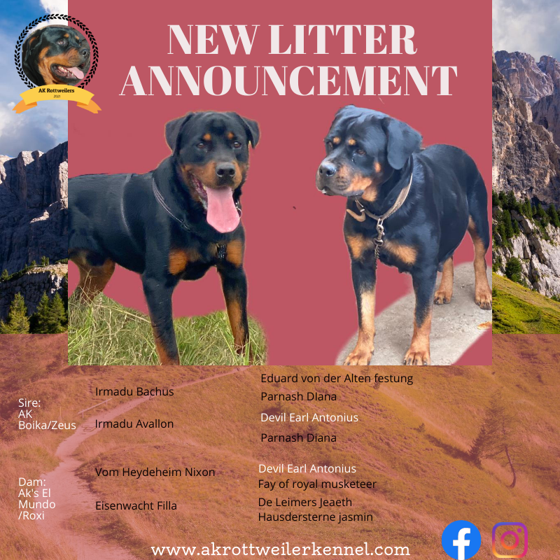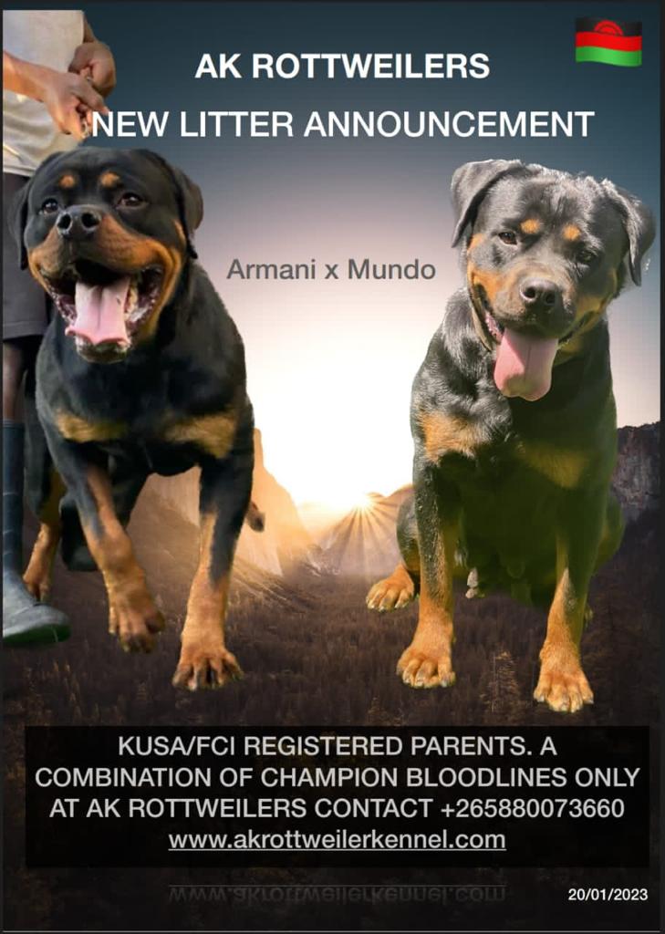 Here is a repeat combination of Ak's Boika and Mundo. We have seen the fruits well built with good temperament like AK's Vamos. Did you know that Ak's Boika is the both the great grand son of the world famous Champion Astor von Junipera and at the same time also the grandson of champion Devil Earl Antonius? Well here you have it. Enjoy this litter as much as we enjoy it . Giving you best of the best here in Malawi.